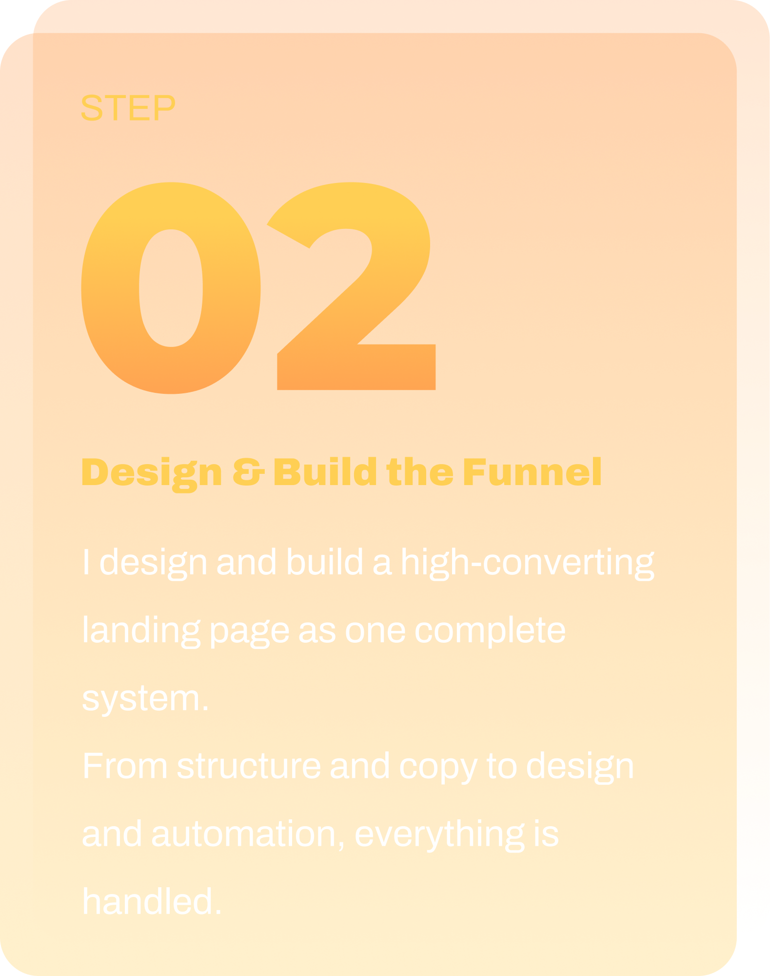 Before we begin, I’ll need to learn more about your offer and what you want your funnel to do. Once that’s clear, I’ll send you a short onboarding checklist.